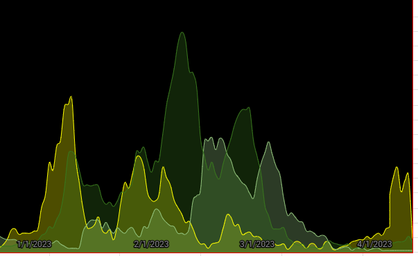 Below, we can see the alt/btc pairs came down to a squeeze point of bearishness at the end of March, and then we had a swell of ALERT status coins that suddenly pulled back into neutral status as Bitcoin broke out and broke $30,000.